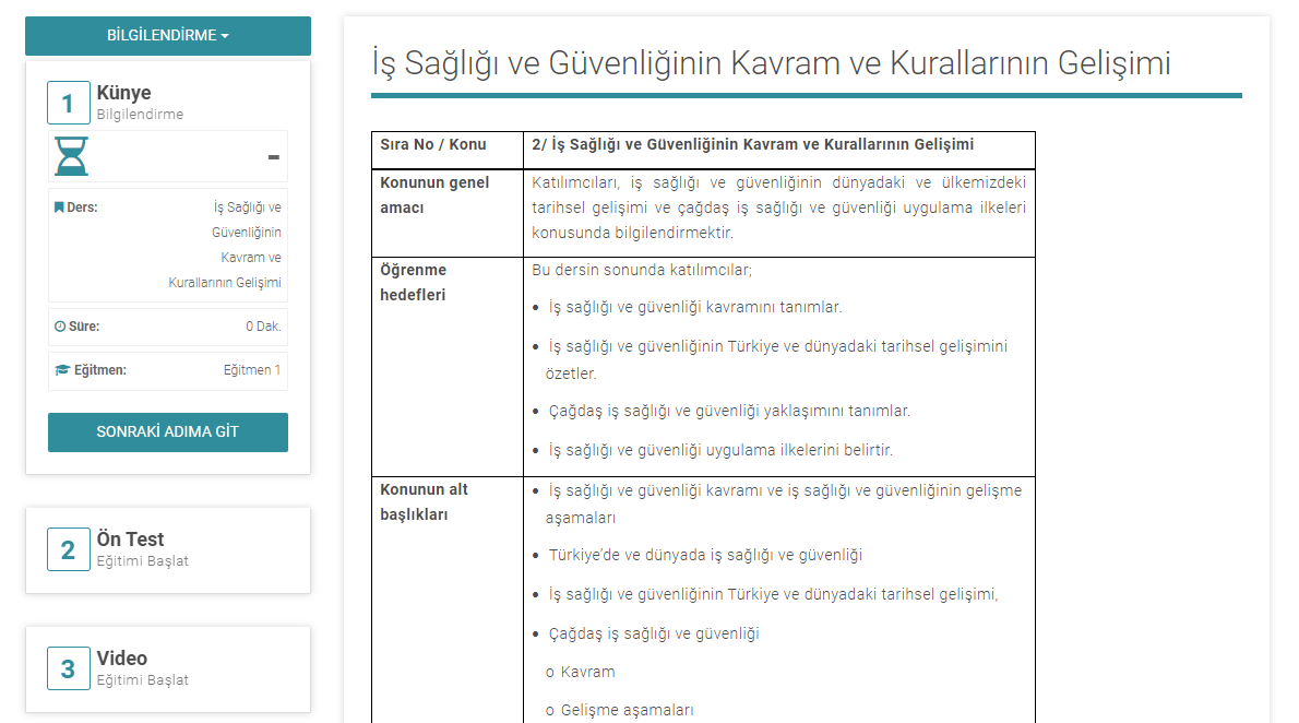 - Derslere giriş yaptıktan sonra gelen sayfa.